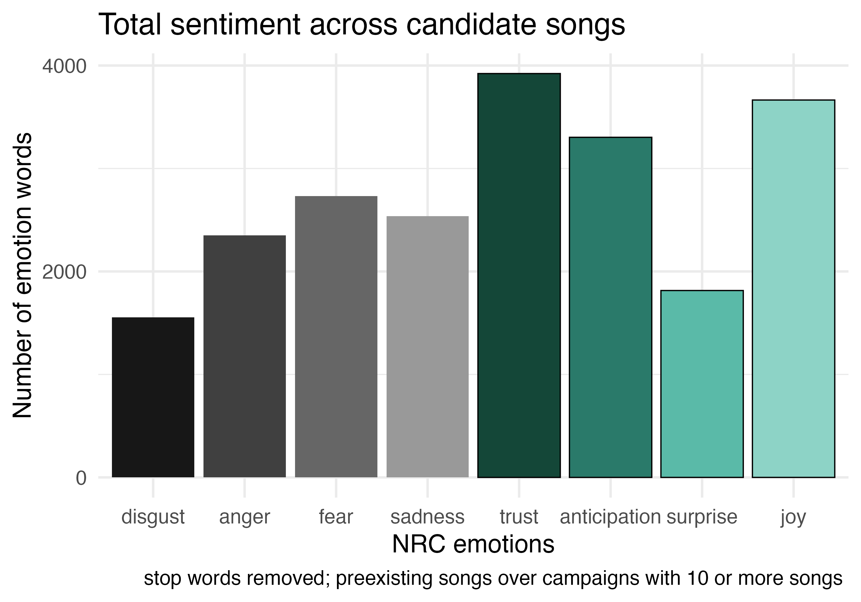 Overall, candidates from both parties incorporate songs with ‘trust’ as the most common emotion.